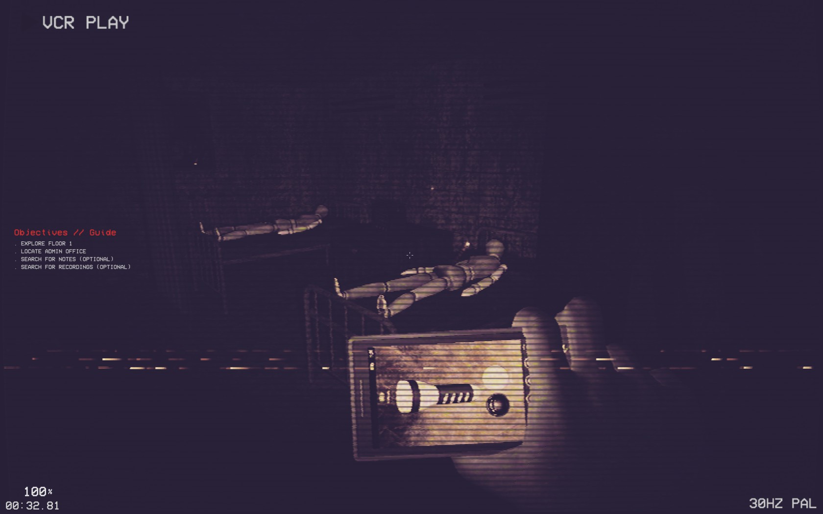 I bé, del tema estètic, com a referent de l’estil del metratge trobat que és, el joc es desenvoluparà totalment amb la qualitat d’una vella càmera de vídeo, a on, com veieu a les imatges, s’han recreat tots els defectes que hi tenien este tipus de càmeres fins als primers anys del 2000. A conseqüència d’això, també tot el joc tindrà una estètica grogrenca-verdosa, que a vegades mareja un poc, a la llarga.
